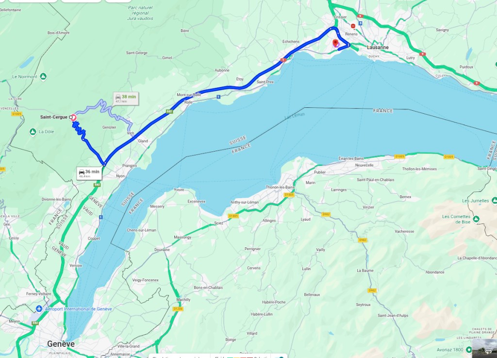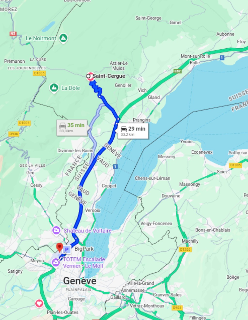 Niché sur la première pente du Jura vaudois, à environ 1 050 m d’altitude, notre immeuble bénéficie d’un emplacement exceptionnel : à seulement 30 minutes en voiture de Genève et 40 minutes de Lausanne, tout en offrant une vue rare sur le lac Léman et les Alpes. En effet, la commune de St‑Cergue se situe au-dessus de la plaine, et très peu de bâtiments peuvent combiner cette proximité urbaine et ce panorama dégagé. lacote-tourisme.ch