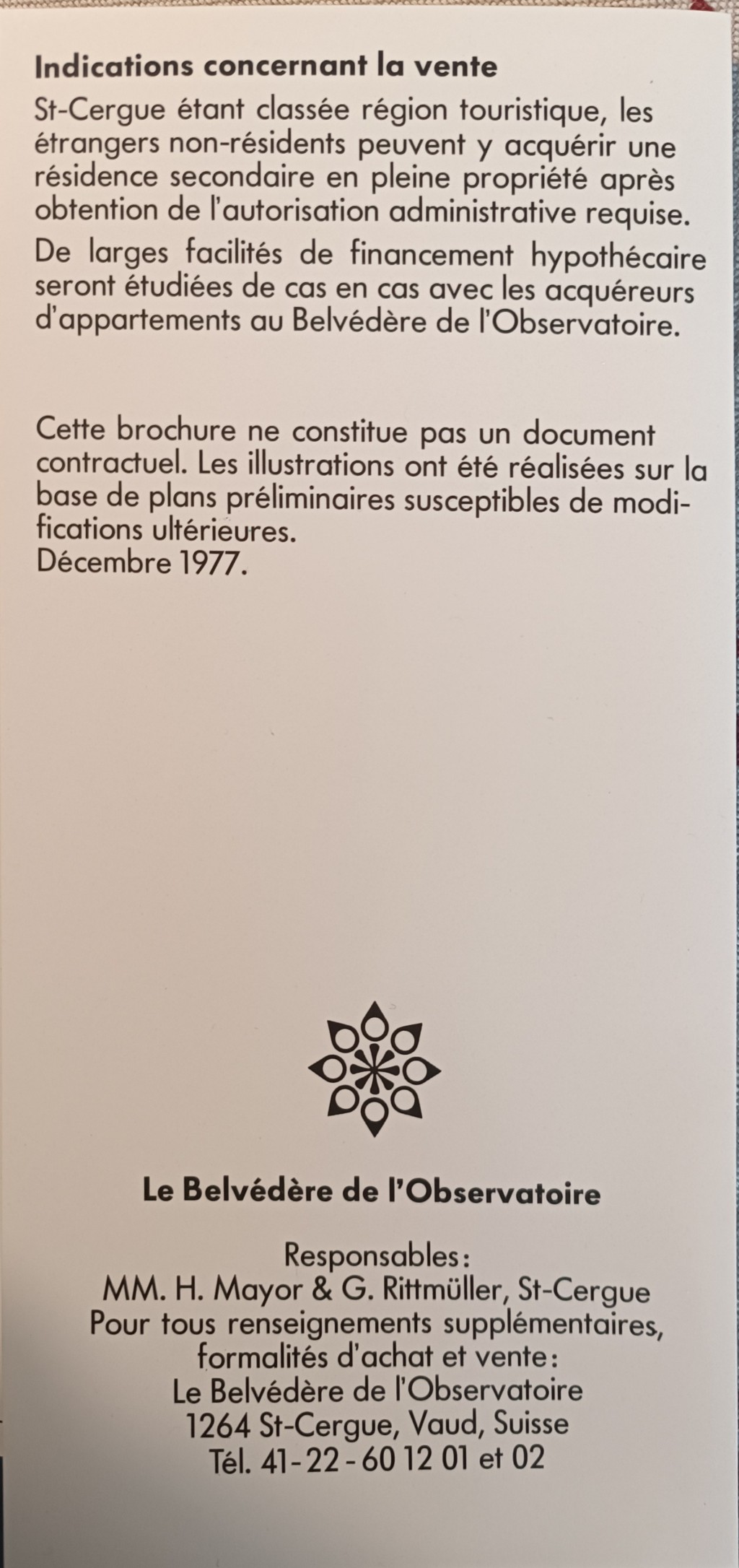 D’après une ancienne brochure et un plan de situation d’époque, le projet du Belvédère de l’Observatoire remonte à 1977.